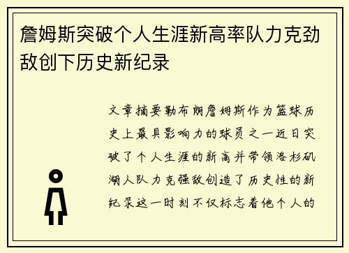 文章摘要:勒布朗·詹姆斯,作为篮球历史上...