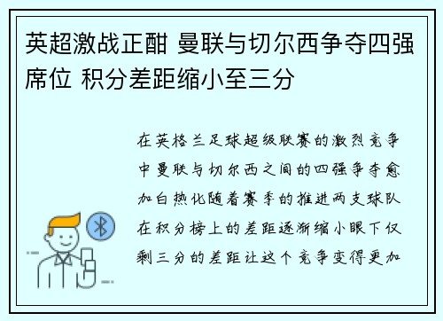 在英格兰足球超级联赛的激烈竞争中,曼联与...