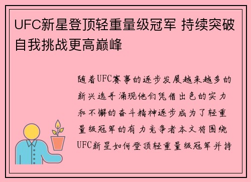随着UFC赛事的逐步发展,越来越多的新兴...