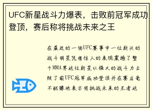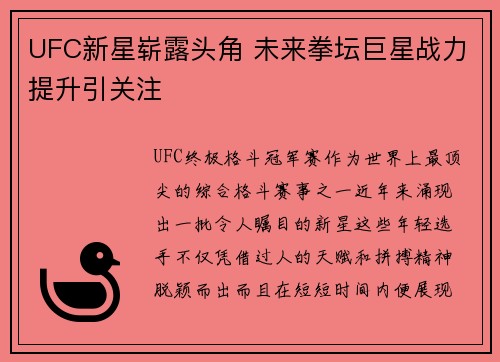 在最近的一场UFC赛事中,一位新兴的战斗...