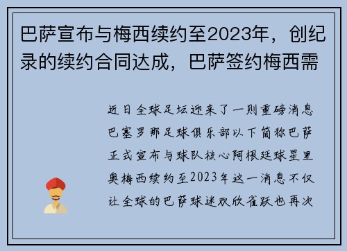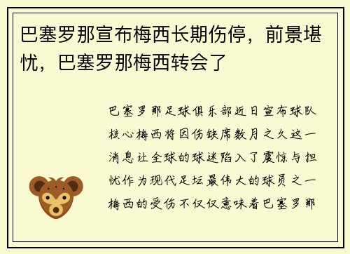 巴塞罗那足球俱乐部近日宣布,球队核心梅西...