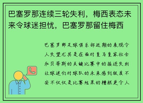 巴塞罗那足球俱乐部近期的表现令人失望,尤...